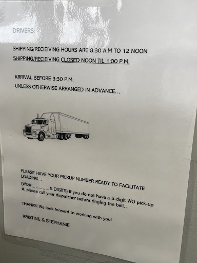Read moreTook 1 hour to unload floor load. Overnight parking available and restrooms in office Great friendly staff decent load times scale on site for drivers to use.Staff was here at 7:45 AM and start unloading...