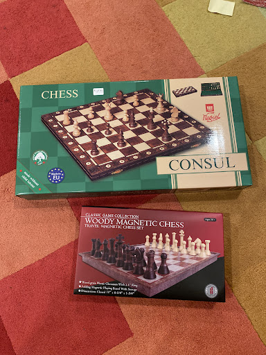After helping two other paying customers, we were happily assisted within 10 minutes of arriving by the owners themselves. Thanks to Netflix and The Queenâs Gambit, the store had been nearly bought out of complete chess sets save for a few plastic and magnetic options. My fiancĂ© and I arrived just in the knick of time and were able to ad hoc a set for purchase. According to the owner Tom, what was available were weighted chess pieces with inconsistent staining not of the highest quality (but still a complete set) that heâd sell for $40. A broken chessboard that had been pulled from the back room earlier was next to those chess pieces just for show, and he was nice enough to offer throwing in that board for free for us if the pieces were bought. My fiancĂ© and I were here to buy a Christmas gift for ourselves as weâve been getting back into the game, and we were more than willing to buy it right then and there. But out of the corner of my eye I noticed a beautiful chess board and decided to purchase that in addition to the weighted pieces. Last minute we threw in a basic digital timer that was almost sold out as well, and Tom one-upped us once more by allowing us to choose a complimentary chess puzzle book for free. We left the store as satisfied and excited customers. We will be coming back later on down the road when they restock to upgrade our pieces and for all and any other chess related needs, but for now weâre simply relieved to forget our plastic Lord of the Rings set and start playing with a great one!
