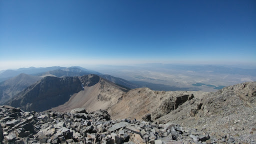 Wheeler Peak at 13,063 ft is the highest independent peak in Nevada. It has over 7,000 ft of prominence. The isolation of the Snake Range in the Great Basin affords commanding views in all directions. This is a very impressive mountain but one that should be climbed with respect.
