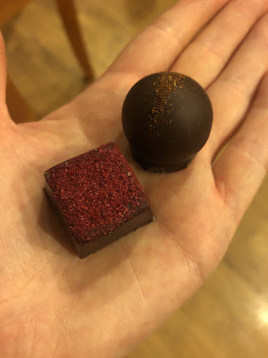 Ā Ā Ā Read moreThis place was such a pleasant surprise. Their chocolates are beautifully handmade and come in fun shapes (I particularly loved the sleeping bear shape!). If you are hesitant because of the higher prices, there are plenty of small chocolate bars that you can try, starting around $2 or so. I got a 70% dark chocolate and was blown away by how smooth it was. Truly, this is good chocolate. I love that they are committed to ethical practices too. In the cafe next door, I got a cup of the vegan drinking chocolate and a sorbet. The drinking chocolate is REALLY good. I am almost never wowed by hot chocolate from a cafe, but this is different. It's made with water and isn't overly sweet. It's hard to find drinking chocolate like this. The sorbet was excellent too. I will...