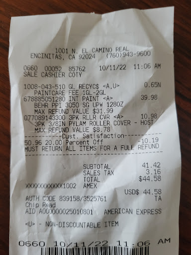 Ā Ā Ā Read moreFirstly, there are a couple of significant issues with customer service. There is a very short Hispanic woman in customer service who consistently exhibits rude and unhelpful behavior towards customers. Her demeanor and attitude are far below the standard expected in customer-facing roles. Her daily attitude is poor and I know this because ive dealt with her on multiple occasions and Iāve seen her act this way toward staff and other customers. She needs to go. Additionally, there is another woman, in her 40s with blue eyes and dark brown hair, who is equally judgmental and unpleasant. These two individuals severely detract from the overall customer experience at this store. i hate coming to this store because of these two women. However, the men, across the board in customer service are all aces. However, there are bright spots among the staff. The woman managing the building and lumber department stands out as a hardcore, tough, and genuinely helpful person. She embodies excellent customer service skills and should arguably oversee the entire store. The parking lot leaves much to be desired, especially for an Encinitas location. āThe workersā in the parking lot soliciting services need to take their business further south, and the amount of litter around the store significantly impacts its appeal. āThe workersā make the store feel very unsafe, dirty, and un-welcoming. On a positive note, the garden department is exceptional and sets a high standard compared to the rest of the store regarding stock, nothing else. The paint department could use a lot of love. If it weren't for the regrettable behavior of the two women at the front counter, I would rate this store higher. If they were my employees, they would be gone. However, overall cleanliness and customer service need significant improvement to elevate this...