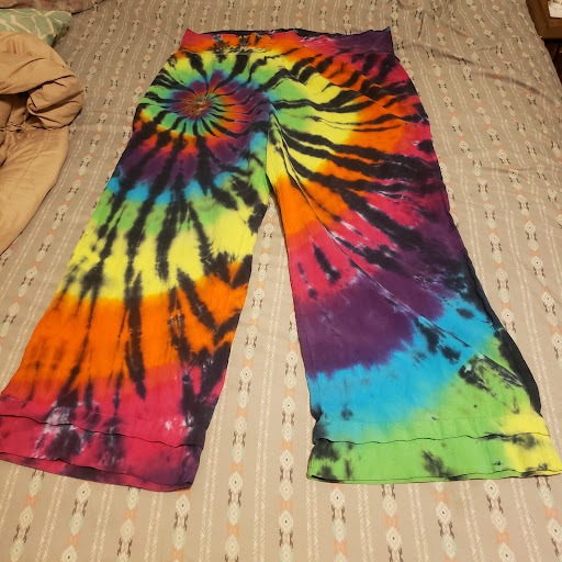 Tie-dye is an art, and this is an artist's studio and gallery. You will find intricately dyed shirts, pants, tapestries, masks, and much much more within these walls, each piece more stunning than the last. You may be planning on a shirt, but then, an amazing hoodie, or pair of flair pants will catch your eye, and you will notice something - all of these tie-dye designs are purposefully arranged in conjunction with the cut and purpose of the garment! "AMAZING", you will say to yourself, under your breath. You had always assumed that a person just randomly dipped some tied up fabric in some ink, and "Voila!", but now you see that there IS a difference... designs of birds and sunsets, pure expressions of joy and love call to you from all the art pieces surrounding you. You realize, now, that this original notion of randomly applied bright dyes MAY be true of the products you have seen in souvenir stands and at the mall, but, just as street art from Banksy is a far cry from the work of a 13-year old that spraypaints his name on a wall, THIS tie-dye was obviously created by a person with a deeper understanding of the medium. Your tie-dye garment will tell OTHERS about YOU, They see it ON YOU more than you, yourself, see it, and it's important that this piece represents the essence of your being. A good tie-dye shirt will last you about 20 years, and it will become your favorite Sunday shirt, or concert shirt, or lounging shirt, and you will KNOW it is special, because YOU CHOSE IT, and it spoke to YOU, and it is IMPOSSIBLE for there to be another of the exact same pattern in the entirety of the universe! Make a wise decision, don't buy that special shirt off Amazon, or from Hot Topic... go to an ACTUAL tie-dye artist. Go to the Peace Place, and find that forever friend. Go, now......