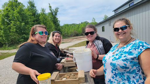 Now to me, where the value came in - was the "mining." If you haven't done this before, basically you buy a bag of sand with pre-placed rocks and fossils in it for $36. Then, you (and your child, presumably) go out back and use their sluice to sift the good stuff out of the sand. My daughter loved it, and we got a really nice hunk of amethyst in ours along with sharks teeth and some...