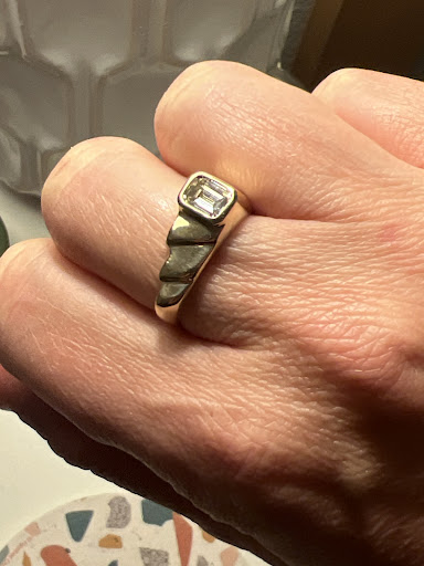 Two weeks after I proposed (aka two weeks after she started wearing it), she bumped her hand while doing laundry and broke one of the prongs. One of the small diamonds was lost. Luckily I had a replacement. I wasn’t sure whether they’d reimburse me for the lost diamond, but I was sure that they’d fix it for free, considering how it was their setting that broke after just two weeks of wear. To my shock and disbelief, the lady we talked to (not the same lady who originally helped me plan the setting) said that they would charge me for the repair, because “the setting was good at the time it was made” and that the warranty didn’t cover “normal wear and tear.” Utter bs. Obviously the setting was not good if it failed after two weeks (and lost a priceless family heirloom). After we pointed this out, she changed her mind and didn’t charge us. She did not seem at all concerned about her company’s faulty setting, about the heirloom that was lost, and expressed annoyance to us multiple times. We did not feel like she cared about our problem (maybe because we were not a super pricey customer) and ended up feeling embarassed for a problem that had not been caused by us.