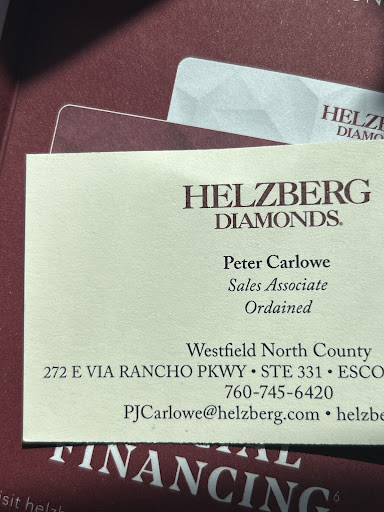 Read moreFirst and foremost, the staff at Helzberg Diamonds (Escondido CA location) is absolutely phenomenal! This is literally no exaggeration. I have been to other jewelry companies and have never experienced customer service the way Peter C and Cynthia (Cindy) H demonstrated customer service to my partner and I. Secondly, when you walk into a jewelry store, you always expect for a sales representative to try to “sell” what they have. Day one, my girlfriend and I walked in and informed Cindy and Peter that we were simply just looking at engagement rings and what exactly we liked- we had no plans on buying , running credit , nothing - just simply looking. Peter and Cindy were super understanding and explained that we could try on every ring “style” (e.g. pear shaped , diamond princess cut , etc) just to see what we liked. My partner and I finally decided what think looked great on our hands. In our heads, we knew which ones we wanted to choose from. Cindy and Peter didn’t apply “any pressure in buying.” They told us to come back anytime. Weeks/ months later we come back (right before Christmas), and our rings are sold out! Guess what? Peter made some phone calls and in the next couple of days , we were able to get our newly engagement rings right before Christmas Eve! I say all this to say that Peter didn’t just display customer service , he actually made me and Partner’s transition to prepare for engagement and marriage super easy. He even called me today and asked how everything was fitting! He is not just demonstrating an excellent skill set at what he does , but he is demonstrating that he absolutely loves to make people happy and smiling. He deserves...