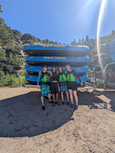 We loved our half-day rafting trip! We went on 7/3/2025 on the 6:45 trip, which was early, but you get an hour and half to nap on the bus there! We met at the Estes highschool parking lot (no bathrooms here) and signed paperwork and then boarded the old school bus (get there early so you can get your own seat!). Our drive Lisa was hilarious and kind and got us all to the first stop safely. The ride through the mountains and through Fort Collins was beautiful. At the first stop there are 3 porta-potties to use and then you get your helmet and life vest. They make sure your life vest is tight! At this point, Brian talked us through everything that could potentially go wrong. We learned what to do if you fall out, how to use a paddle correctly, and why you should not stand up in the river if you fall out (your feet will get caught in the rocks!). They taught what to do if we fall in, or get caught under the boat. It's important that you are able to listen to directions and work together! We then boarded the busses and again and got a preview of our route as we went by the river. At the next stop, we were told which groups we were in and then boarded our boats. Our guide, Izak who was very kind and told us what commands to know (paddle 1, paddle 2, all forward, and also back 1, etc). Izak sat in the back and showed us how to secure our feet in the pockets and underneath the center parts of the boat. The water was very cold but I'm glad we did not spend the money on the wetsuits because the water felt good in the hot sun! We did get splashed quite a bit but thankfully no one fell out. I think Izak was doing most of the work in the back to steer us! We did several exhilarating level 3 rapids and then stopped and all got out. I think there was one porta-potty at this location. We got back on the boat and drove a short distance to the second location. Lisa gave everyone the option to stay on the bus if they did not want to get back on the boats (everyone got back on the boats!). We all got back out and into our boats and headed down the river again! This time we got to do a fancy spin-around maneuver that Izak talked us through and it was great! There was one spot where they let everyone jump in the water and splash around a little. At the end, we all got out and had a moment to get photos with our guide before heading back to Estes. The half-day trip was perfect for us! Our legs were tired from all the hiking we did before so I'm glad we were able to do the rafting trip in the morning and then have all...