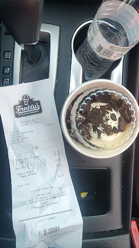 Sadly, this Freddy's is the worst one we've ever been to - and we've been to many locations over four states. Unfortunately, it's the only one in our area, so we really wish they'd improve! The staff is unfriendly, unmotivated, and slow. The dining room was filthy, with dirty tables everywhere. We had to get napkins and wipe down a table to sit at, and we saw others doing the same thing. Usually, the food is"ok", but on this trip, the burgers were so bad we couldn't finish them - no moisture whatsoever, overcooked and dry, dry, dry! The fries were cold, and the chocolate shake had so much chocolate in them that they were sickeningly sweet. Terrible meal ... and so disappointing as this is one of our favorite burger chains. We won't be back until they improve their quality control and give this location a major...