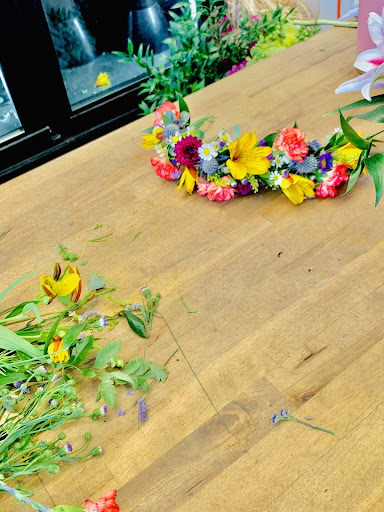 While I was there they were working on other projects, and I took some pictures. I love the headband/flower crown they were making and some other flower arrangements.
