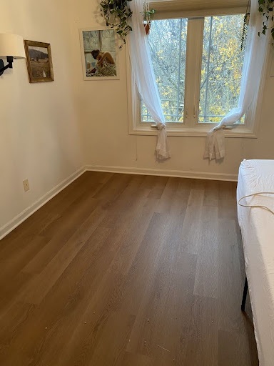 The installer duo was also very nice and efficient -- they took maybe 2.5 hours per room from start to finish. My building also has a "no construction before 9am" policy on Saturdays, so they were extra quiet between their arrival around 8:15am and 9am. I didn't realize that they don't caulk the baseboard/quarter-round until I happened to ask about it when they did the living room. They kindly did so for me, but because they hadn't in the bedroom, I had to go out and buy caulk and DIY it -- they said they usually don't do it because they let the painters take care of it, but because I'm not painting my rooms that wasn't part of my plan. I was able to caulk it easily enough and fill in the holes from the nail gun in the quarter-round with spackle -- not a big deal, but just something to be aware of so you can plan accordingly!