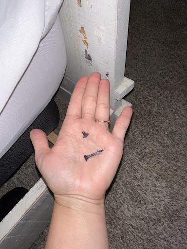 Bed broke yet again on the other side! Thankfully this time we were already awake! The wood piece holding ALL of the wooden slates up had ONE screw and that rest were flimsy nails!! Yet again, everything is made of wood but the parts keeping it together are TRASH.
