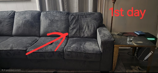 Update: they came & added polyfill to the lumbar cushions but the actual cushion you sit on are sagging with deep wrinkles. The couches look like cheap couch from China or Indonesia or some other country. Americans wouldn't make a couch like this. Americans would stand behind their products as well. Although the staff were very helpful & eager to sell you a couch. The sales team has now threatened to send delivery drivers to our home & take our furniture back insted of honoring the 200$ 5 year additional warranty we purchased. Sales team needs more customer care skills. They need to ne attentive to consumers needs, and they need to stand behind the products they sell. They are trying to bully and intimidate us now. We bought 2 new couches (1488$) they are less than 2 weeks old and the spot where I sit was sagging from day 1? Definitely not worth the 1,500$ we spent. This new couch we purchased less than 2 weeks ago is sagging worse than our old couch after 8 long years. This is how it looks after sitting for 1 hour. The sales told me I have to unzip the cushion & stick my hand inside there to fix the poly fill inside the cushion? This doesn't even seem plausible. Im supposed to do this after sitting on the couch everytime. Completely unacceptable! I urge everyone to do more research before they purchase anything from this store. As we did not do this. This couch looks nice but the materials are low cheap quality. I have never seen a brand new couch do this. We are 150% unsatisfied with the large home purchase. This is something we saved for over a year to purchase. This review should help prevent people from impulsive decision making. Do not purchase over priced low quality furniture from Slumberland because it looks nice on the showroom floor! This is what you get. The review is based on the quality & integrity of the furniture not the sales team. They were just doing their jobs. I do suggest they take their hard earned money & buy something expensive to understand the frustration that comes along with seeing what you paid for is not what you received. Management's way of handling this is extremely...