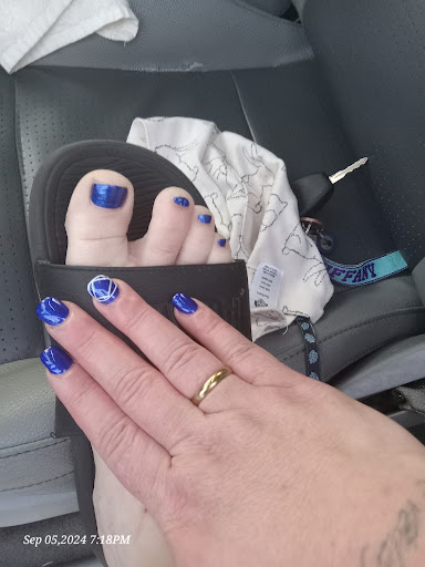 Read moreFriendly skilled professionals. I got a full set and pedicure. The massage chair was nice. I was offered water. They used clear communication about prices. My feet was embarrassing until after the amazing pedicure. Feels and looks so good to have all the dead skin and calluses off my feet. The technician made sure the water temp was good and didn't make me feel embarrassed by the state of my feet. 💜🩷💚 I will be coming back & bringing my toddler as they have child prices for kids. I got to have a conversation with whom I believe may be the boss/manager; She was friendly, kind, and informative. I mentioned how I used to get my nails done but stopped cuz I broke them too soon. She let me know the best way to make the nails last the longest is to keep them vlean and dry. DRYING THEM IS KEY. I never knew this. Also they said they guarantees the nail for the first 3 days. After that it's on us for the upkeep. ❤️💚🩷💜 I suggest not waiting until a hour to closing time to walk in like I did. (After closer inspection nail length isn't the same on all of them... wtbs I still believe they did am amazing job. If they weren't rushed they might have been...