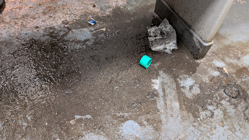 But the showers are fetid. Please see my attached photos. I was hoping that it was a one-off experience our first night, but tonight sees the SAME thick cake of scum on the shower floor as the previous night. It's at least an eighth of an inch thick, and I'm not sure whether it is composed of hair, mildew, mud, or some combination of all of these. As I took the photo, I was afraid I'd see two stalk eyes spring up from it as it finally attained life. The feast of the senses continues on into the sitting areas just outside the bathroom, which are full of trash, empty bottles, paper products, etc. Ditto the curb in the parking lot. See photos.