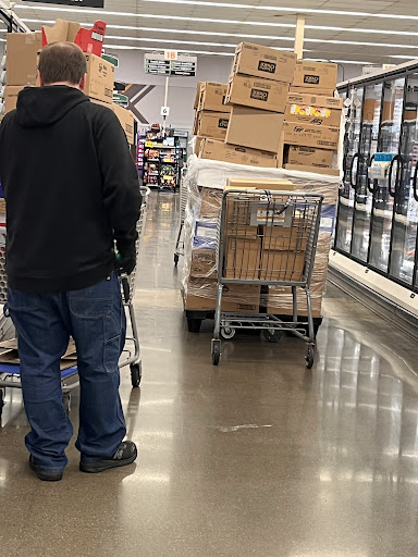 While I understand that stocking is necessary for grocery operations, Kroger has a third shift for this very reason, and it seems logical to utilize that service to avoid clutter during busy hours. Customers should be able to shop freely without the added obstacle of pallets blocking aisles.