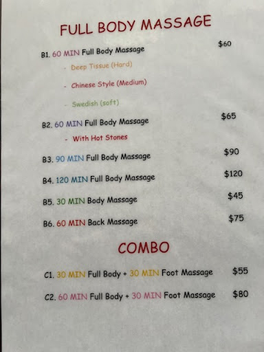 Read moreEXCELLENT massages and ambiance! This place got a refresh and looks and feels amazing when you walk in. Am also offers lots of new services. It’s so pretty and relaxing. Highly recommend. Darren and Sally have given me wonderful massages. I have loved every practitioner I have seen here- they are all very good. You can’t go wrong. I've received their foot massages and whole body massages with hot stone and every service has been wonderful so far. I would definitely recommend this place. It's also very clean and the staff is so warm and friendly. They have a new menu as well with new services so definitely plan on...