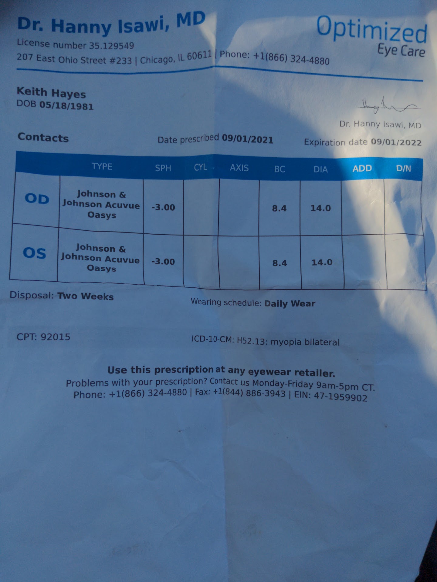 Looking for alternative solutions, I asked if they could fill my active contact lens prescription with what they had in stock, be it the primary or generic brand. I had my prescription printed as a backup and had this in hand with me and presented to the receptionist.