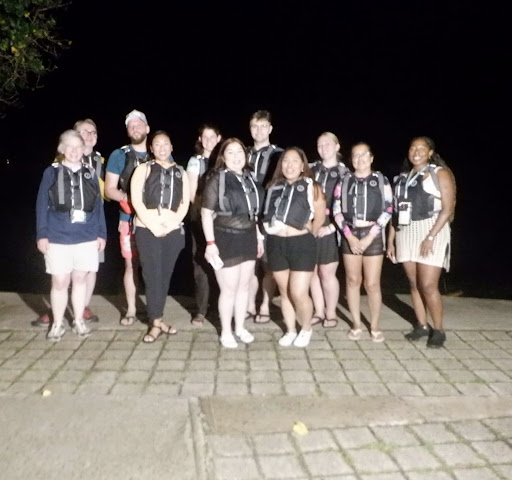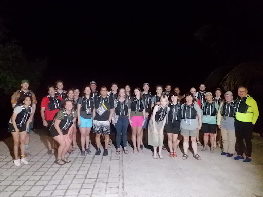 The day before the tour, we received a call letting us know what time we would be picked up at our hotel. He arrived on time for when they said he would (at 6:10 pm). We were the first people picked up. We rode in an economy van that holds about 14 people (not a bus). He picked up everyone else along the route and we arrived at the kayaking location just after 8:00 pm. We were given time to use the restroom and change clothes in a bathroom if we needed to. They provided bug spray, but we had our own ā after reading other reviews and tips, we made sure we had plenty! We were weighed individually to ensure we were under 230 lbs, then we signed another waiver. We were given life vests and a quick description of how to kayak. They took a group photo and individual kayak pictures (you get them from their Facebook page). We walked into the water that went up to my thighs. My flip flops were difficult to keep on and not get stuck in the muck. Iād recommend water shoes! Each kayak is a 2-person. No one kayaks alone ā if you donāt have a partner, youāll be paired up with someone you donāt know. You will kayak 1.5 miles each way (total 3 miles) in a narrow and winding canal thatās full of mangrove trees and an extensive root system. It was pitch black both there and back. Our only way of knowing where to go was to follow the kayak in front of you. We have a glow stick on the back of the kayak and thatās it ā otherwise you canāt see where to go. Not being able to see and can be a bit scary at times, even for an adrenaline junkie like myself. Be prepared to run into root systems and trees! Especially if the kayak in front of you that youāre following goes off course and youāre following them! This is where long sleeves come in handy (low hanging branches can scratch and to deter bugs). It also rained on and off during our tour ā that didnāt stop anyone! After winding back and forth through the narrow passage, moving aside for passing boats and other returning kayak tours, we make it to the open bay. They explain how bioluminescence works and why it exists. You can barely see the bioluminescence without additional means to make it darker out. The moon and cloud reflection of the town lights make it too bright. They drape a tarp over groups of 3 kayaks (you hold it up with your head or one hand). You splash around and you can see what looks like silver glitter, sparklers, or tiny little fireflies. We saw it best when we splashed the water on the kayaks and our legs. The more you splash and move it around, the more you see it. You will not see constant glowing water like photos may lead you to believe. Itās not a glow as much as a sparkle or tiny flash. Itās tiny flashes that leave very quickly. You canāt swim in the bay and itās so dark out there that you donāt want to tip your kayak. We tried to record it with our phones, but it didnāt work ā you couldnāt see anything in the videos. After learning a little about bioluminescence and viewing it under the tarp, we returned back through the narrow canal. By this point, my friend and I got the hang of how to communicate with each other to know when to go faster or slower, left or right, etc. This helped a lot! After we got back, they provided a small bottle of water and an individual bag of chips (variety to choose from). You could rinse off your legs and feet with an outdoor faucet. You could change into dry clothes in the restrooms before getting back on the van. They had the photos posted on their Facebook page within 30 minutes of us leaving. Since we were the first picked up, we were the first dropped off. We got back around 11:00 pm.