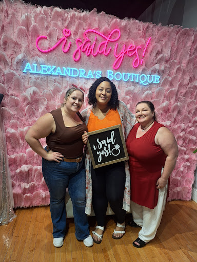 Read moreHad my first experience buying from a bridal shop this week -bought my "mother of the groom" gown! Living in the area I had heard of Alexandra's so I thought I knew where they were - nope! Right street and neighborhood just wrong block. I was a bit anxious as I located them and saw street parking (that was full) but was pleasantly surprised when I circled the block and found their spacious parking lot in back; love the pink parking lines btw :) My consultant was Michelle and she was so helpful and kind. Being my first time I had no idea what to expect or what I was looking for except the color and length. I tried to explain what I thought might be flattering and she was off. She brought me 3 dresses and I have to say - she heard exactly what I wasn't saying lol! The first dress I tried on scored an 8 out of 10, the second a 6 out of 10 but the third was a 10 out of 10! I tried on one more just for fun but my mind was made up on the third and thankfully my future daughter-in-law agreed (great minds lol). While I was waiting for the rest of the group to decide I mentioned to my family that I was a little warm and had to sit down. Michelle offered me a water, and brought some for the rest of the party as well. Truly, Michelle is my first and only experience, but I am so grateful for her attentiveness, thoughtfulness and kindness. Remember there were other women there trying on dresses so I was able to observe them and their consultants as well. One other compliment for Michelle - she didn't keep all of the dresses in their plastic garment bags in the fitting room with me - brought me the 3 and after I tried each one on it was removed; I really appreciate that! Here are my pros and cons Pros: my consultant Michelle definitely 5 stars, no fee to try on dresses, spacious parking, HUGE selection of dresses, for a brick and mortar store price was reasonable, reminders by text and phone. Cons: our dressing rooms were small with no where to hang our street clothes and only a small ottoman to sit on (which I used for my street clothes), alterations are not included in the price and no discussion up front about payment requirements (I found out about the last two at check out but these could be on me from my inexperience because I thought the alterations would be included and that there would be a payment plan available) All in all it was a very pleasant and enjoyable experience, in many ways because of the years Alexandra's has been in business but, I think my consultant Michelle played a very big part in it too, after all she was the human connection of my experience not just the business. I recommend you to go to Alexandra's for your next formal wear event, I think you will be pleased. I will post again once my dress is in - in about...