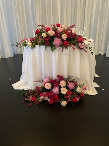 The highlight of the evening was undoubtedly the breathtaking table floral centerpieces. These gorgeous, robust arrangements were the epitome of luxury and grandeur, featuring a beautiful variation of shades of pink, white, and cream. The centerpieces were visually stunning and exuded a sense of exuberance and fun, capturing the joyous spirit of the day. Our florist's dedication to excellence and their ability to bring our vision to life made our wedding day truly unforgettable.