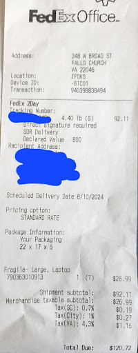 Never will I ever do business with FedEx office again, or ship with them for that matter.