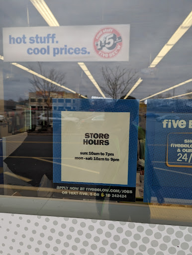 Read moreApparently this place closes at 6pm during the week. This is generally a time where many people are getting home from non retail jobs and trying to get errands in. Went there with my 4 year old today after he had a few shots at the doctor. Hyped him up to let him choose a few toys for being brave and they had the doors locked at 6:05pm with some printed out hours taped to the door for the remainder of the week and until firmer notice. I was so bummed for my son because he was so excited to go there and I felt like garbage because I promised it was open - because it should have been! Nothing on Google, nothing on the website. These hours seemed to be their new hours moving forward as well. What retail store closes at 6pm during the middle of the week 3 weeks before Halloween? Dumb. I’m annoyed and I’m sad for my son and I’m going to skip five below for now on and just go to target instead. At least...