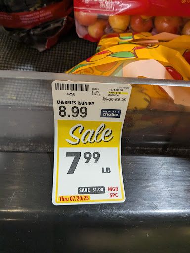 We were getting groceries and saw a sale on cherries so we picked some up. There was a sign that showed they were on sale. After I put my more rewards number in I realized at the end that they were not ringing up on sale. I went to customer service where no one was behind the counter. Zoe, who was apparently the customer service person was talking to the self checkout guy. After having to stop talking they both rolled their eyes and looked annoyingly at each other because she had to do her job. After discussing the issue, she went to check the price of the cherries and said that she only saw the red cherries on sale so we walked her right to where the sign was, right by the Ranier cherries where I told her in the first place. She said the sale ended yesterday, which, why would I know that, if the sign was still up. I returned the cherries for principle. I asked her if she removed the sign and she said not yet. Yes, leave the sign to deceive more people so you can get mad that you have to do your job. Customer service was terrible here and we will do our best to not have to come back to...