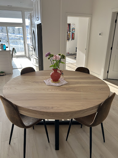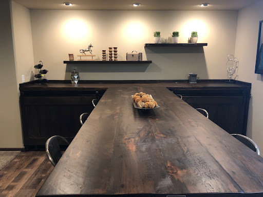The Grain Designs (GD) Team is a wonderful group of professional wood & metal craftsmen ready to create a piece of furniture or accent piece you will love. Our relationship started when we asked GD if they would make window trim pieces for our new home from reclaimed wood. They said, "Sure!" and met with us to create the right sizes, stain and finish to blend perfectly with other wood in our home. Since then, GD has designed and built beautifully made, custom and functional pieces of furniture from reclaimed wood for our home, including a kitchen table with matching bench, a barn door, accent wall mantle and trim for our fireplace. We are currently working with them to create a matching buffet for our kitchen table....we can't wait to see the result. Why shop for furniture when GD creates exactly what we want and need for our home??!! Give these local craftsmen a try - you will be impressed with the quality and the price of the one-of-a-kind pieces GD creates right here in the Red...