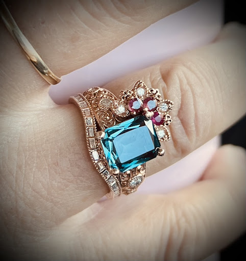 Another wonderful visit designing a custom wedding band with the addition of birthstones and removal of a couple diamonds to balance out the overall look and aesthetic quality. Thank you very much Miss Laura, for helping me choose the right ring to make the perfect statement to my perfect wife. Also thank you Mr. Mark for helping me to achieve the perfect arrangement and cut of the birthstone to diamond ratio! You’ve also managed to solder the two rings together flawlessly and with a keen eye for detail proactively polished the weathered engagement ring to match the same luster of the newly acquired wedding band. All I can say is “WOW”! I am blessed to have a personal jeweler with such a keen eye for detail and design as you! Thank you,...