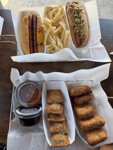 Read moreThe sandwiches are better than the hot dogs. Corned Beef sammy was Bussin, the hot dogs not so much. Please for the love of god do not put hot dog toppings on the bun and then the hot dog on top! Doesn't that defeat the purpose of slicing the hot dog open when cooking it to allow for more surface area for toppings to go on TOP? The toppings soaked into the bun and kind of ruined the chance to experience all of the different flavors in each bite. I basically ordered a Carolina Dog and was surprised to see very little toppings, in fact usually some chili will spill out when biting into a carolina dog at some point but there was so little chili on it and soaked into the bun that didn't happen. I would return to try their sandwhiches again but the hot dogs left us disappointed. Im not sure why ours came out like this because when we looked around we seen other order had the toppings piled high on top. The atmosphere was clean and casual, I would add some bar stools to the bar so that people waiting for 20min when busy have a place to sit and ditch the jazz music unless you want people to...