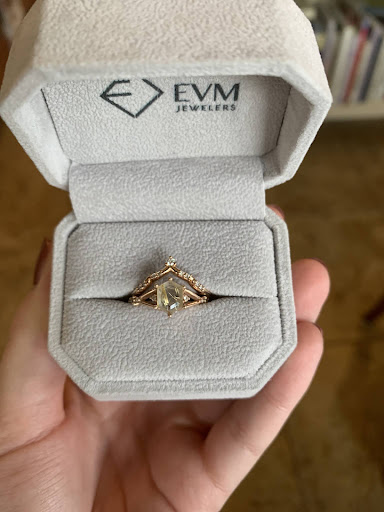 I cannot rate EVM Jewelers highly enough! I found an engagement ring design I loved online, and Brooke was wonderful in helping make my custom dream ring a reality. From being super respectful of our budget and ensuring we did not pay above what she first quoted, to doing her own research about my stone options (I went with a unique quartz over a traditional diamond), to making sure I was 100% happy with the design I could not have asked for better customer service! She was great about helping me customize, which was a breath of fresh air after several jewelers I visited weren't really prepared to go outside of the traditional styles and stone options.