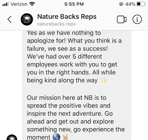 Read moreMy teenage daughter placed an order for some Nature Backs shirts and stickers. She already had a couple shirts and love the way they feel and fit. The order came quickly and my daughter loved everything she received, but my daughter did not tell me until a couple weeks later that a couple shirts were missing from the order. I was concerned because some time had passed. However, I emailed NB and explained the situation and that I no longer had the box or packing slips. They said, no problem, and asked that I email them just a picture of what I received. I did that but received no response for a week. I was upset while writing my follow up email when I realized that my original email was sent to my daughter, only, and never to NB. When I realized the error of my ways, I finished an email to them (in which I sent them the requested picture and explained my delay). It was about midnight on a Sunday night. Literally, less than 2 minutes after I sent them my email, I received an email back from NB saying thanks, no problem, the missing shirts would be sent out immediately. This kind of customer service stands in stark contrast with other companies where you are forced to wait on virtual lines for eons just to chat with someone. From my daughter, I knew the quality of NB's clothing was outstanding. Now, from my own experience, I have learned its customer service is...