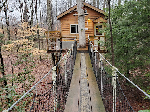 Nice find near The New River Gorge in WV. Not so little but a very quaint real treehouse. Very clean, neat and roomy inside - a cabin 20+ feet in the air attached to and supported by 2 very tall trees. Beautifully nestled in the rolling woods with trees surrounding you. We loved the hot tub and close proximity to the New River Bridge. I also very much appreciated the birthday cake in the refrigerator that greeted us upon arrival. My wife has always wanted to stay in a treehouse. I guess we can check that off of her bucket list. Do yourself a favor and make a reservation with Country Roads Cabins for a very peaceful and relaxing time in Almost Heaven...