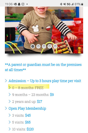 My 8mo old daughter is very mobile but not quite walking. I was looking for a place for her to climb on some safe padded things and maybe a tunnel to crawl through, nothing much. I found this place and the website states 0-8months can play for free. I thought how great that would be since she isn't big enough to walk or use some of the other stuff. The online booking form didn't work and kept saying I am not authorized, even after registering, so I decided to drive there and check it out. I was met by two girls at the front desk who were super rude and seemed to have no clue how to have a normal interaction with a customer. They proceeded to tell me it's only free if they are accompanying a sibling. That is not what the website states. They also looked at her and said, "shes pretty small", as if I am a total idiot for thinking she could play there. Regardless, they said it would be $9 for my daughter. I wasn't sure if I wanted to pay that since she wouldn't be able to use all the toys. They said I could take my shoes off and check it out if I wanted. I agreed and took my shoes off. I then stood at the gate, waiting to be let in, while both girls stood at the desk doing nothing, for what felt like an eternity. In my mind I was thinking, hello, is anyone home, you just said we could come in and check it out. Finally after making awkward eye contact, they slowly moved toward the gate and let us in. The toys for little ones were super dirty and in that same area there was an adult, lying face down on a bench (sleeping, napping? I don't know). I walked around the other areas which seem cleaner than the toy area but honestly, not worth $9 for my daughter. Based on the lack of basic human communication from the girls who worked there, combined with the misinformation on the website and dirty toys, I won't be returning, even when my...