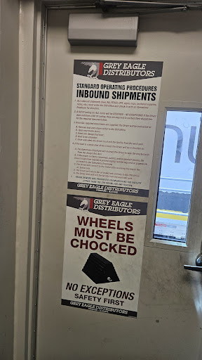 The location is extremely easy to get to, being just off the I-44 in Fenton. Coming from the West, just take Exit 274A off I-44, left onto Bowles Ave, right onto Larkin Williams Dr, then keep going till you pass the main Grey Eagle Distributors building, and enter on East side of the building (marked on pic). Coming from East, take Exit 274, turn right onto N Hwy Dr, then right onto Assembly Pkwy, then left into entrance at East of the building. When exiting the facility after being unloaded/loaded, you leave by the West of the building. The area is fenced, but just press the button and they'll open up for you. The Receiving/Shipping office is clearly marked on the building on the left after you enter the facility.