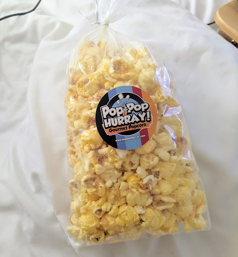 I'm giving them three stars because the Kettle Corn was very good. I'm from out of town and when my neighbor told me about the place and that she knew the owner, I became very excited because I loooove gourmet popcorn. The woman working the counter did greet us when we walked in, but it went downhill from there. She seemed really put out that we dared to ask for samples from the wall of different flavors they had. She told us matter-of-factly that we could only sample 2 flavors, so they're expecting you to just purchase their popcorn and hope for the best. I felt bad daring to ask for four flavors and just settled on my go-to flavors of Kettle Corn and White Cheddar. Given the eye rolling and silent sighs from her, I just wanted to leave and not buy anything, but I really wanted some. My neighbor was on the other end of the counter and apologized to the woman and said we weren't trying to be a bother, and she said "I couldn't tell." There were no other people in the shop, so it wasn't like she was under any stress. I was thinking I was going to spend somewhere between $30-$50 and just bought three small bags and left. Again, the Kettle Corn was very good and on point, but what I found with the samples of the salty flavors was that the popcorn tasted somewhat soft and moist and not crisp and crunchy like other brands I regularly purchase at home; also the flavor of the few I tried weren't strong.