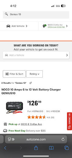 Read moreWanted to pickup a NOCO Genius 10 battery charger TODAY since I have a deeply discharged/dead Lithium battery and this unit can recover it. AutoZone website indicates this item is available for pickup.