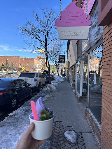 So, this frozen yogurt (sorry, "yogaert") place is not for everyone. It wasn't for us. My wife and I were really excited that there was finally an opportunity again for frozen yogurt in town, and tried it out last night. Here's what I didn't like about it. (1) The environment. They had a boom box propping open the door that was blasting music both into and out of the store. This made it impossible for my wife and I to sit and converse while eating. A group of three people were standing in the middle of the place shouting at each other to be heard over the din. Amusingly, the people behind the counter seemed oblivious to this, as they attempted to engage us in conversation ("Is this your first time here?" I finally figured out) as soon as we had walked into the place. The store is cavernous, with little tables of kitsch for sale (gaudy tourist refrigerator magnets, for instance). There were glaring purple lights shining down on our table by the door. Simply: I found sitting there unpleasant. (2) The prices. People have commented on this already. My wife and I both filled our cups about 1/3rd full of the "product" and together it came to $23. That's a lot more than I've ever experienced at frozen yogurt shop. (3) The quality. There were only 5 flavors to choose from. One was labeled vegan; there was no indication if any of the others were low-fat or not. My wife and I kept it simple, just vanilla and chocolate. But the chocolate tasted like fudge syrup, and I don't rightly know how to describe the vanilla. I put a few blueberries and strawberries on but when I went to squirt some whipped cream out of a can, it came as a warm yucky melted blob. The cans weren't on ice or anything---just sitting out for who knows how long---and further spoiled the treat for me. On the positive side, the people behind the counter were very nice. Maybe you won't be put off as much by the environment or other things as we were---reading these comments I guess many others weren't bothered by them. So, to each their own. But we didn't like it, and we...