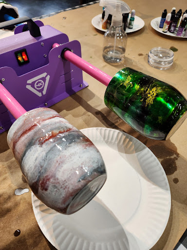 Read moreI hate to give 2 stars because the event was a great experience but I am also concered about the health of patrons painting wine glasses with whatever is used to cure them. Sorry, this is long winded.... My mother and I attended a wine glass class in April. They came out beautifully. I went a few days letter to pick them up but the resin was taking forever to dry. They were kind enough to deliver them to my mother's house because we lived far from their Flemington location. When delivered to my mother's they had much of the paper bag they were delivered in stuck to the sides. This is maybe 3 or 4 days later and they were still tacky. I finally decided to maybe try washing them to see if that would help. No, it made it worse! These are not safe to drink from and I don't feel comfortable with the fact that this is a product sold to patrons. Please do not take this class if available again. $60 wasted!!! Why are these items not tested before sold to class members? If they were, surely they would have known better than to continue with the resin product used. See photos attached. First is while rotating to dry. Last photo is after I attempted...