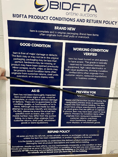 Inspecting Items: They boast the opportunity to inspect items but clearly they don't want you to. They require an employee to be present at the time of inspection. This has proven to be difficult, cumbersome and sometimes impossible because there are no designated emps to accommodate this policy. Most locations are almost always short staffed. When you are fortunate enough to get a rep to show you where the item(s) are, for inspection you feel rushed. I've been to locations for inspection hours before the auctions end and the items are still wrapped in cellophane on pallets in the back of a tractor trailer, therefore impossible to inspect. They do their very best to prevent customers from inspecting before bidding.