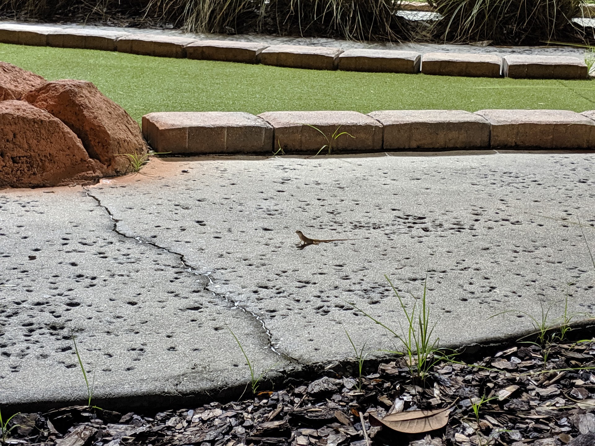 Read moreA few days ago we (my girlfriend and I) felt like a round of puttputt. We had a Groupon for this venue, 12$ for unlimited play and an icecream at the end. Pretty good deal! The venue itself wasn't hard to find, has a few parking spaces curbside in front of the entrance and lots more just across. The entrance/cashier hut was clean and inviting, like the courses were. The lake in the middle of the venue and its shore could be cleaner. The other reviews already pointed out that there are two courses. We didn't find too much of a difference but we spotted two holes that seemed to be an exact copy of each other (find the apple shaped bump holes). We really thought the architect ran out of ideas. Coming back to the venue itself: Very nice, clean "greens", no worn out putting areas. As we played a huge rainstorm came in so that we took shelter under one of the many roofs with benches - those came in pretty handy at that time! All around the park the soothing sound of african bass drum music lying in the air like a lullaby. Not really exciting, but VERY calming, we liked it. We didn't see the restrooms, so we cannot review those. The course wasn't really challenging for us, we played each course twice and we were well below par - ok, we are super competitive. The likelihood of coming back to that venue is a 7-8 out of 10. Definately...
