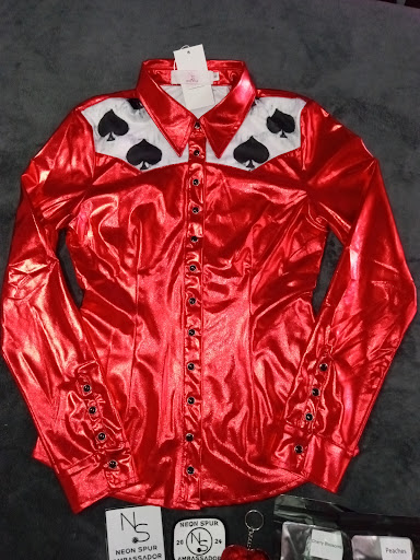 Ā Ā Ā Read moreI got my Red Spade Rodeo Shirt from Neon Spur and it's everything I thought it would be. It's a sleek fit while still being stretchy enough to move around, the inside is very soft, keeping you comfortable and the outside is the incredibly shiny and beautiful silky material. It is guaranteed to...
