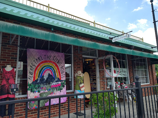 Locally owned and staffed by folks with great taste, girls and women from 14 to 80 will find beautiful clothes and accessories that are well made and fairly priced. Top quality tie dye you can wear in a professional setting, hemp, natural fiber, and ethically sourced clothing from independent manufacturers. Great for "festival" clothes but equally great for business casual. Fabulous T shirt selection, purses, backpacks, and accessories too. The men's section is smaller but of equal quality. You'll find some funky dude tees that you don't see everywhere. Monkey Business also carries the best brands of fun socks, including Hot Socks and Sock It To Me in men's, women's, and unisex. Open later on Friday and Saturday, sometimes beyond...