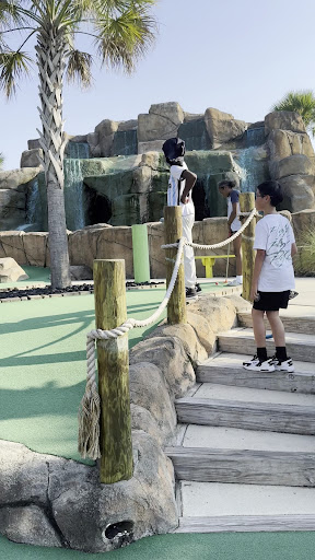 Read moreHonestly the absolute worst time I’ve ever had at mini golf. The course is made in a manner that it’s nearly impossible to keep the ball on the course, the course is nowhere close to being stroller friendly, you have to walk on the greens to advance to the next hole most of the time, one hole told you to hit your ball into the water and then the current wasn’t even strong enough to push the ball downstream, and the bits of sidewalk between holes have a lot of drop offs that are prime locations for somebody to roll an ankle. The course also felt pretty uninspired in terms of design. The course was clean and had nice decorations but most holes were pretty boring.