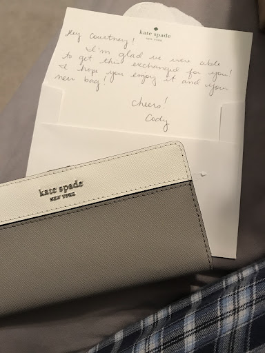 Read moreThe store is beautifully organized with a great selection, and today I had a wonderful customer service experience. I was there with my (formerly) white crossbody bag and asked for help deciding between leather cleaner and conditioner. The sales associate went above and beyond in demonstrating the way the cleaner works and cleaned my bag for me as a courtesy. I was pleasantly shocked and will absolutely be returning for any future Kate Spade...