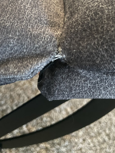 Soon after, they re-delivered it, but within hours, I discovered that the repairs they supposedly fixed had only been band-aided and the fabric back of the sofa came apart again. Then I sat in it and discovered the cushions were so different from the cozy store model that it couldn't even be considered the same furniture. They were so hard and stiff that it hurt to sit in, not to mention that it was rickety like some bolts had not been tightened and sat way too high off the floor.