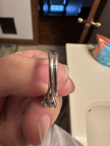 Read moreI tried to not to say anything about this place but I think it’s time to say my experience since I no longer will be supporting a business that gives you a five dollar used gift card as a “I’m sorry”, I went in to get my engagement ring resized, very excited to get my ring back when they tell me it’s ready to pick up on my way home I realized one of my accent stones was chipped immediately start crying/now I have to go back again to get it fixed. They fix it, But ever so slightly, one of the stones does not match the other, Whatever I accept it, I take it I carry on, I noticed my finger turns green. I assume the soldering they used is copper on a silver ring… I get a cleaning kit fixes the issue. Everything is fine for a while. My fiancé and I get married we go order the wedding band takes a while understandable, Get it fits perfect no issue. After a while, I decide to get those two rings soldered, and then I noticed they soldered the hump that goes over my stone on the wrong side of the ring, and they just filled that little hump with like soldering, I don’t say anything mostly because why should I tell a business how to do their job? Anyway, not even half a year the band snaps, I leave a voicemail I go in. I try to ask if I can get these bands replaced. He simply shut that down. Then continue to tell me that silver tarnishes. But my thing is a ring should not be tarnishing within two days of wearing it, especially with that soldering that they used, Now he uses a laser to weld “fix” the ring I pick it up. I noticed there’s a new scratch in it and they didn’t even fix the other side which is also about to snap. Overall, all he said they can do is put credit towards a different band if...