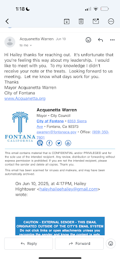 We need new leadership — people who want to understand and uplift their constituents, not belittle or silence them. Watching Councilmember Cothran disrespect our senior council leadership in public forums is beyond disappointing — it’s dangerous. His entitled behavior reflects a deeper problem: nepotism and favoritism over qualification and public service. Fontana isn’t a dynasty — it’s a city full of hardworking families who deserve respect and responsive leadership.