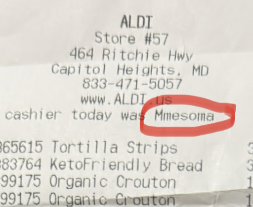I frequently visit this aldi so I was very disappointed when I was met with HORRIBLE customer service on 2 March from a cashier by the name of MMESOMA. Before we even got to the register, we witnessed her being rude to the elderly man ahead of us, DROPPING his receipt before he could even grab it. Once we did get to the front of the line. She was rushing, scanning the groceries, basically throwing them in the cart as if it would allow her to get off early or something…mind you, it was only 6pm. Once she was done scanning, I began to grab the cart so I could pack up my groceries, and replace it with a nearby cart so she could continue helping the next customer. Before I could even do that, she said “not gonna lie, you’re NOT taking this cart,” with an attitude. This is one of those situations where it’s not what she said but it’s how she said it. So I was loading my groceries right next to her since she didn’t allow me to take and replace the cart and she says “so who’s paying????,” with an attitude of course. I was obviously the one paying however she continued to rush me and my friends. Idk if she thinks I have 5 hands but God only blessed me with two so I’m not sure how she expected me to empty her precious cart and pay at the same time…She had an attitude from the beginning looking us up and down mentioning how hungry and how ready to go she was. It is no one’s fault that she has to do a job that SHE applied for. MMESOMA needs to work on her customer service skills or MMESOMA will continue to drive away business by being rude to loyal...