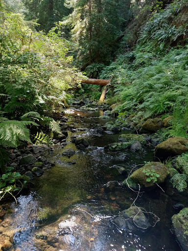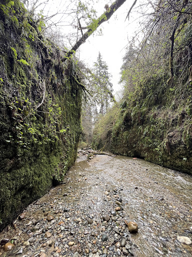 Fern Canyon runs along little river. Very easy no uphill hike/long walk. Lush green and I would say 90% shaded. There's only about 12 parking spots I believe. Inside Van Damme state park so if there's a ranger in the hut going in there is a fee. No dogs on the trail, but surprisingly there were #2 bathrooms in the middle of nowhere on it. It does become a fork at one point I turned around at that point but other hikers said it does loop but is very uphill...