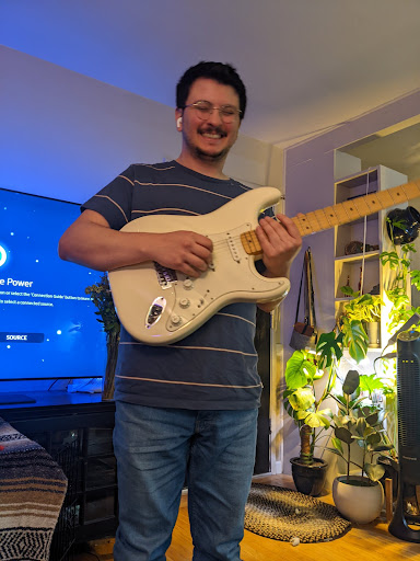 On one of these yearly trips, I even impulsively bought an Olympia White Fender Stratocaster because of how great a deal it was. I barely had enough space in my car to take the thing home, but sure enough, it has become my daily go-to guitar. I even named it “Elroy” after a little white dog that was in the store at the time. I cherish my Strat. I’ll upload a picture of the day I brought it home.